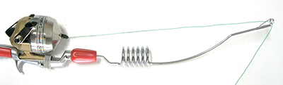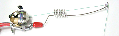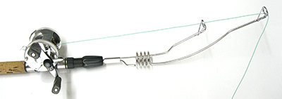 Finally, is our new 7 coil universal rod. This is used with casting, spinning, bait casting or level wind reels and is used with any of our handles for any application. It is strung similar to our spin rods but for any reel or handle. Simply run the line through the power coils and out through the eyelet as shown below: |